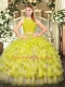 Graceful Yellow Green Sleeveless Floor Length Ruffled Layers Zipper Quinceanera Gown