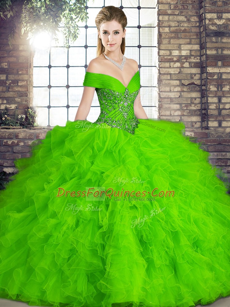 High Class Floor Length Lace Up Sweet 16 Quinceanera Dress Green for Military Ball and Sweet 16 and Quinceanera with Beading and Ruffles