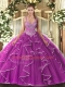 High End Fuchsia Sleeveless Floor Length Beading Lace Up Sweet 16 Dress