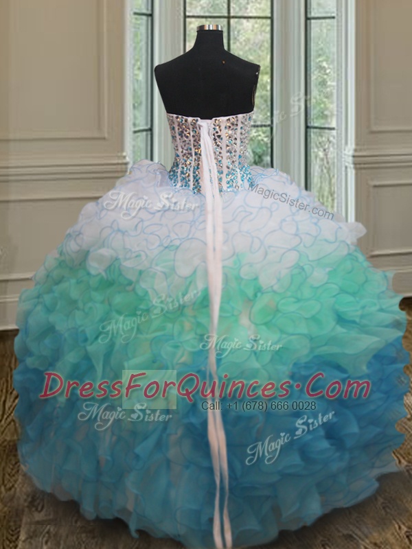 Hot Sale Multi-color Organza Lace Up Sweet 16 Dress Sleeveless Floor Length Beading and Ruffles