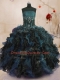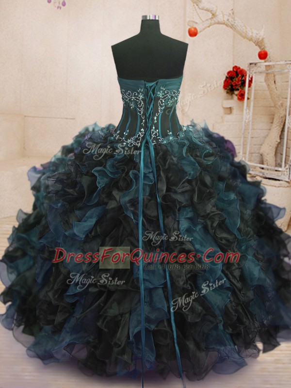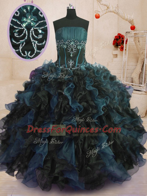 Latest Organza Strapless Sleeveless Lace Up Beading and Ruffles Quinceanera Dresses in Multi-color