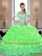 Latest Spring Green 2015 Quinceanera Dresses with Appliques and Pick Ups