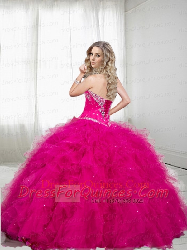 Latest Sweetheart Beading and Ruffles Dresses in Hot Pink for Quinceanera for 2015
