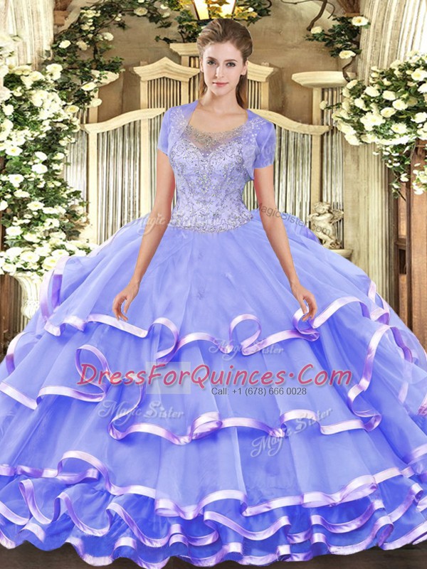 Lavender Sleeveless Beading and Ruffled Layers Floor Length 15 Quinceanera Dress