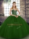 Low Price Green Tulle Lace Up Sweetheart Sleeveless Floor Length Vestidos de Quinceanera Beading
