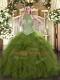 Low Price Olive Green Ball Gowns Beading Sweet 16 Quinceanera Dress Lace Up Tulle Sleeveless Floor Length