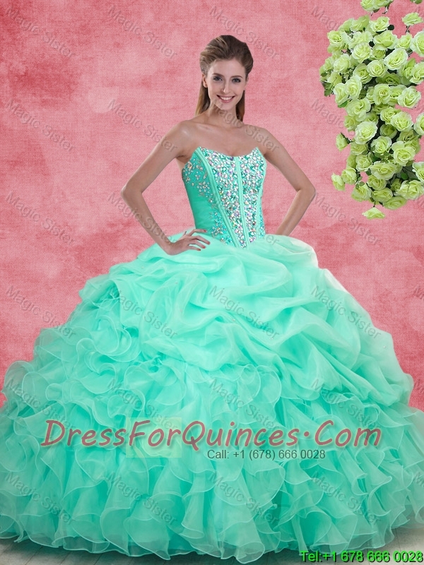 Luxurious Apple Green Quinceanera Gowns with Beading and Ruffles