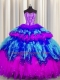 Modern Bling-bling Visible Boning Sweetheart Sleeveless Tulle Quinceanera Dress Beading and Ruffles and Ruffled Layers and Sequins Lace Up