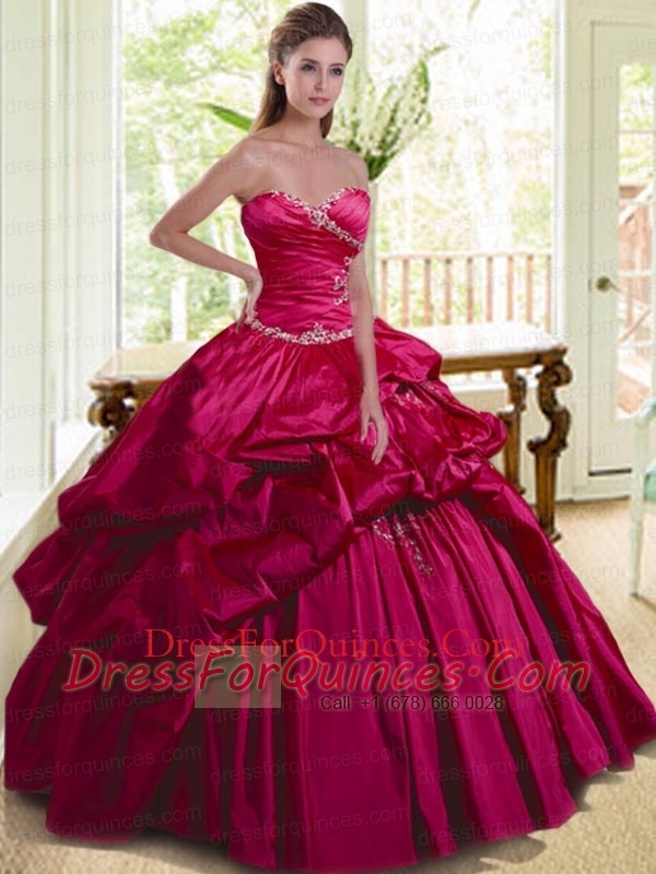 Modern Sweetheart Appliques and Pick-ups Quinceanera Dress in Fuchsia for 2015
