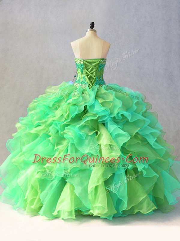 Multi-color Lace Up Sweetheart Beading and Ruffles 15 Quinceanera Dress Organza Sleeveless