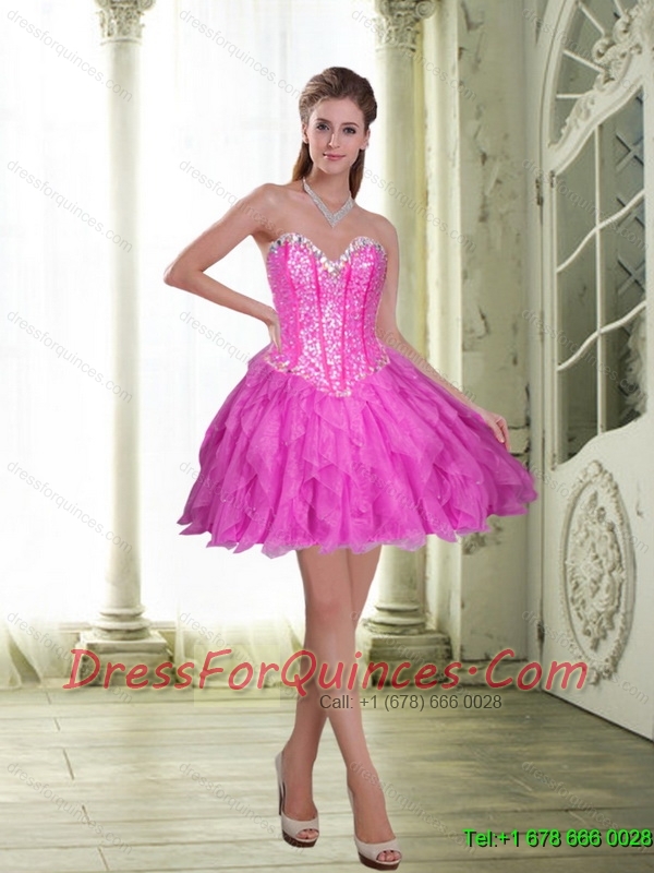 New Style Beading and Ruffles 2015 Fuchsia Sweet Sixteen Dresses