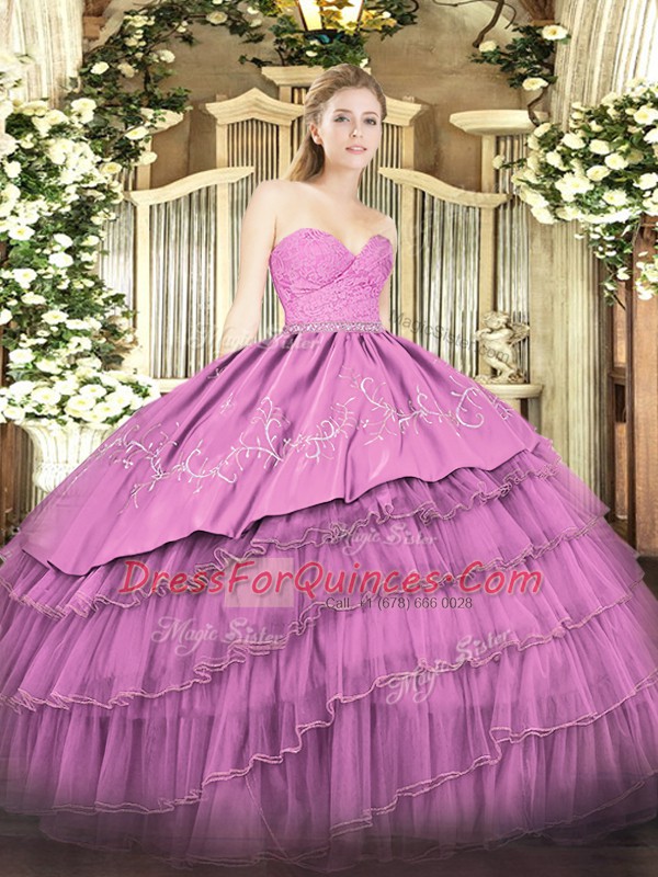 New Style Sleeveless Floor Length Beading and Lace and Embroidery and Ruffled Layers Zipper Vestidos de Quinceanera with Fuchsia