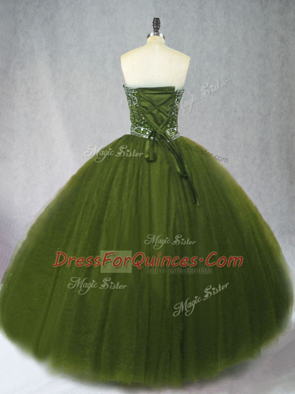 Olive Green Sleeveless Tulle Lace Up Quinceanera Gowns for Sweet 16 and Quinceanera