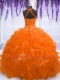 Orange Red Sleeveless Organza Lace Up Vestidos de Quinceanera for Military Ball and Sweet 16 and Quinceanera