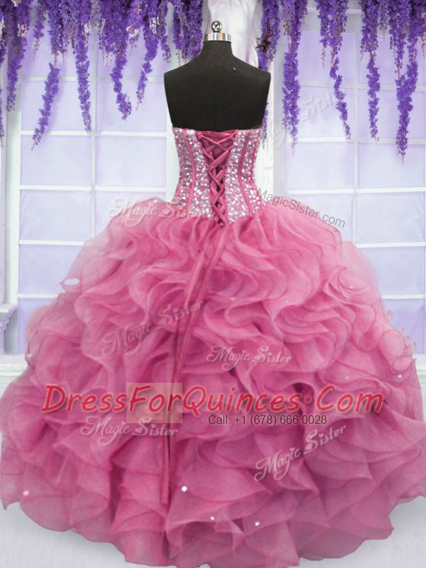 Organza Sleeveless Floor Length Quince Ball Gowns and Beading and Ruffles