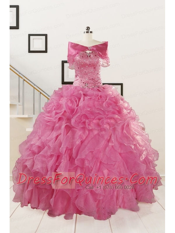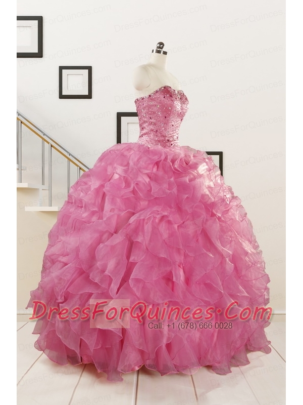 Pink 2015 Pretty Quinceanera Dresses Sweetheart with Ruffles