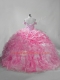 Pink Straps Neckline Beading and Ruffles and Pick Ups Quinceanera Gowns Sleeveless Lace Up