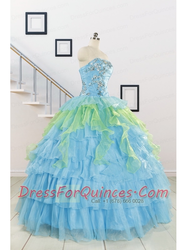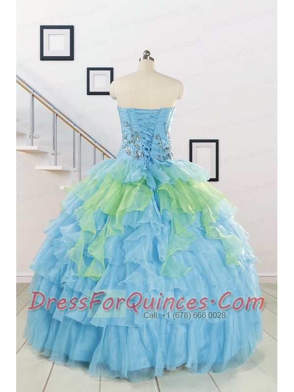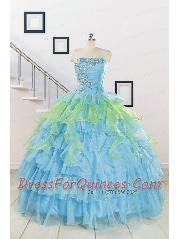 Pretty Beading Strapless Multi-color Quinceanera Dress for 2015