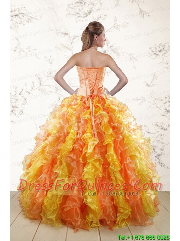 Puffy Luxurious 2015 Quinceanera Dresses with Appliques and Ruffles