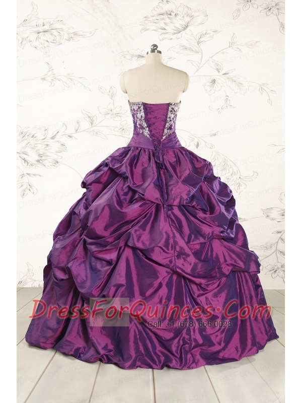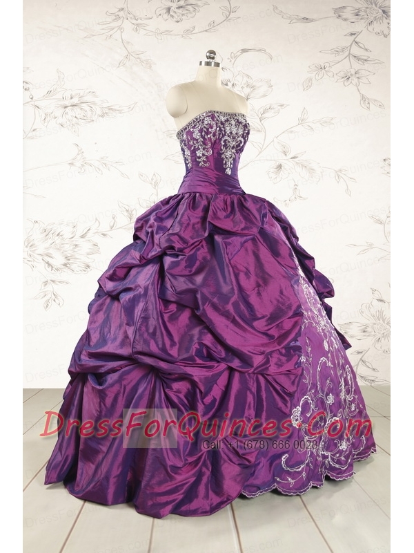 Purple Strapless 2015 Quinceanera Dresses with Embroidery