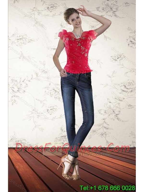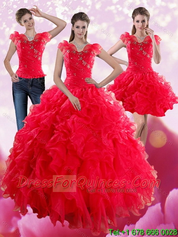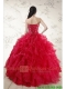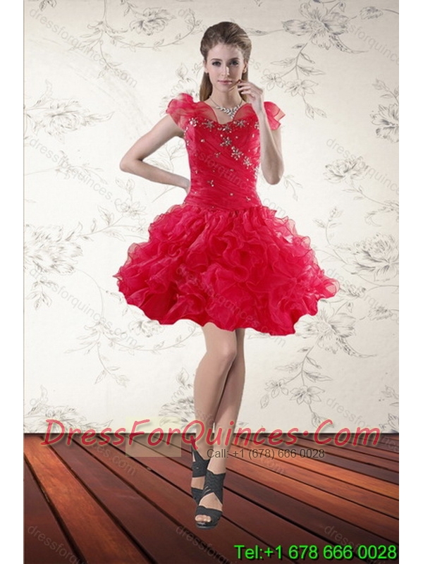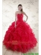 Red Sweetheart Quince Dresses with Ruffles and Beading for 2015