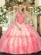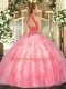 Romantic High-neck Sleeveless Sweet 16 Dress Floor Length Beading and Ruffles Watermelon Red Organza