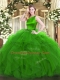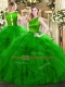 Romantic Sleeveless Organza Floor Length Clasp Handle Quinceanera Gown in Green with Ruffles