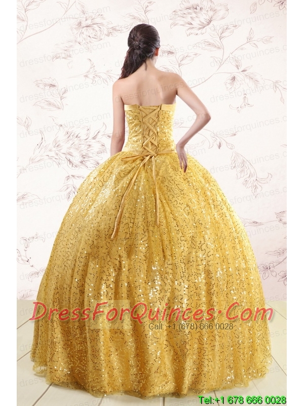 Romantic Yellow Sequined Quinceanera Dress with Strapless