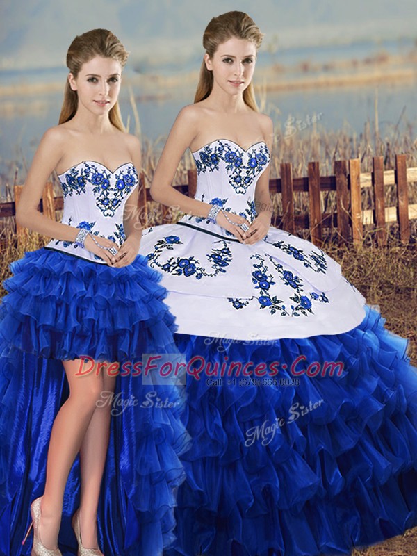 Royal Blue Organza Lace Up Sweetheart Sleeveless Floor Length Sweet 16 Dresses Embroidery and Ruffled Layers and Bowknot