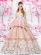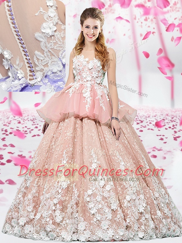 Scoop Sleeveless Lace Up Quinceanera Dresses Pink Organza and Tulle