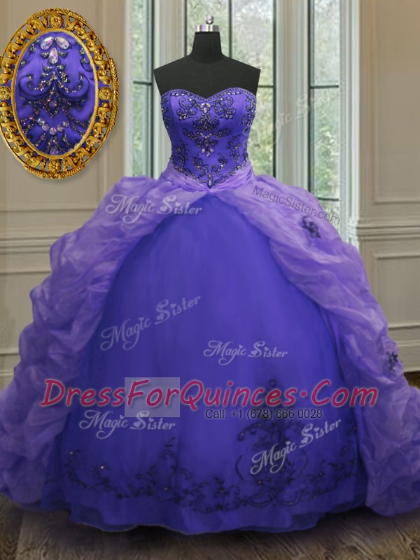 Simple Multi-color Organza Lace Up Sweetheart Sleeveless With Train Quinceanera Gowns Court Train Beading and Appliques and Pick Ups