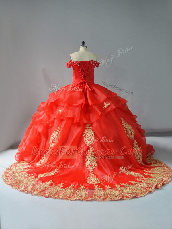 Sleeveless Court Train Lace Up Appliques and Hand Made Flower Sweet 16 Dress