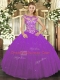 Sleeveless Floor Length Beading and Appliques Lace Up Sweet 16 Dresses with Eggplant Purple