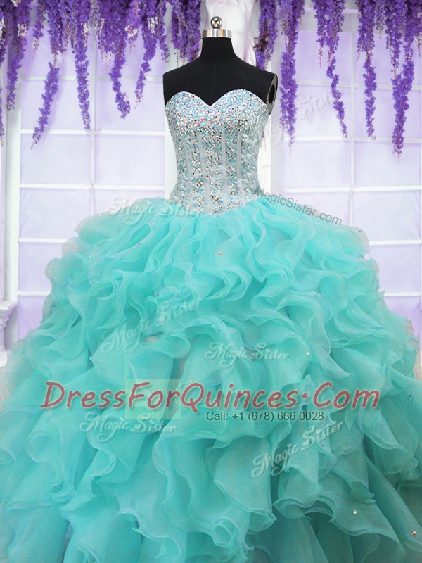 Sleeveless Lace Up Floor Length Beading and Ruffles Sweet 16 Dresses