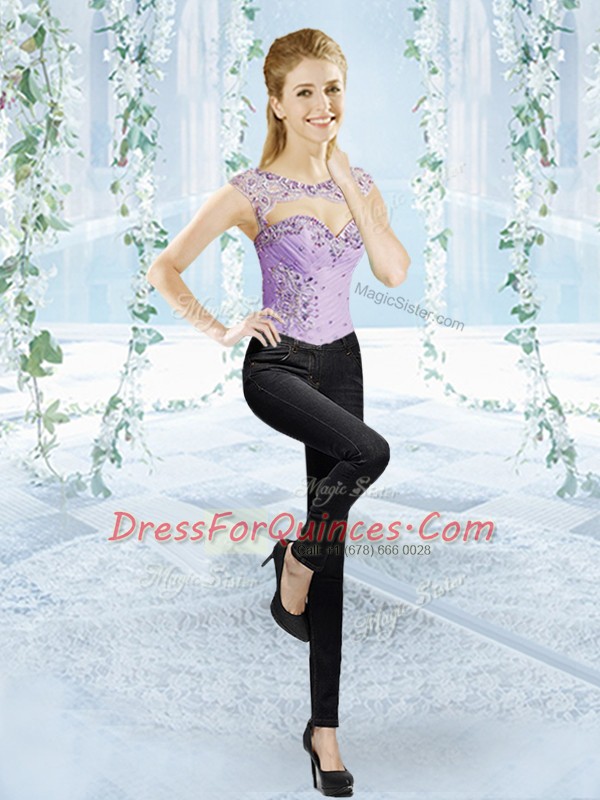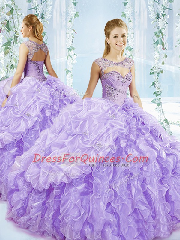 Smart Organza Sweetheart Sleeveless Brush Train Lace Up Beading and Pick Ups Sweet 16 Dress in Lavender