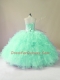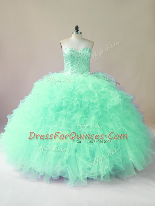 Sophisticated Apple Green Tulle Lace Up Ball Gown Prom Dress Sleeveless Floor Length Beading and Ruffles
