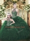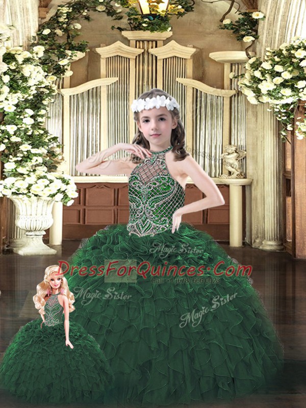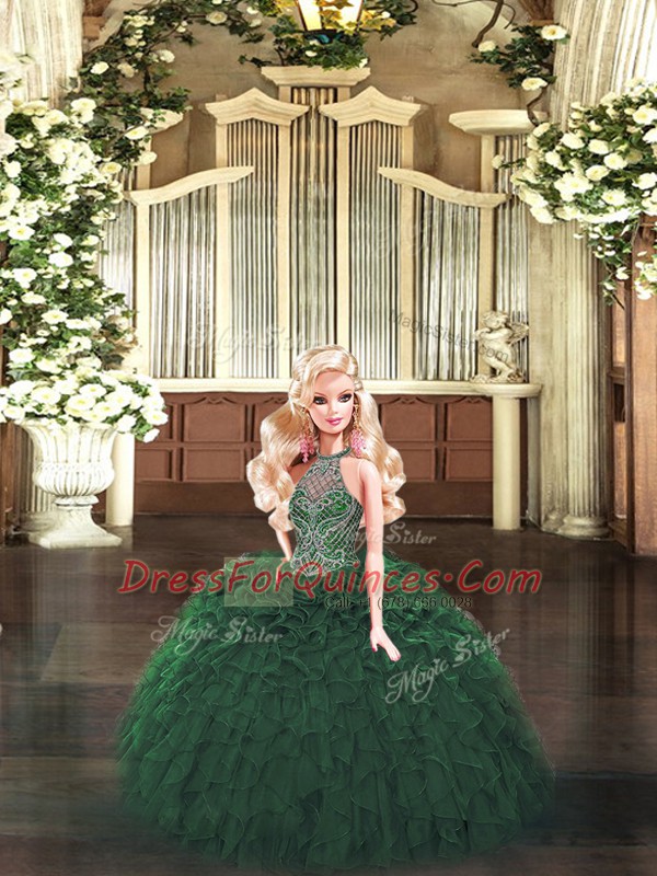Sophisticated Halter Top Sleeveless Lace Up 15th Birthday Dress Dark Green Organza