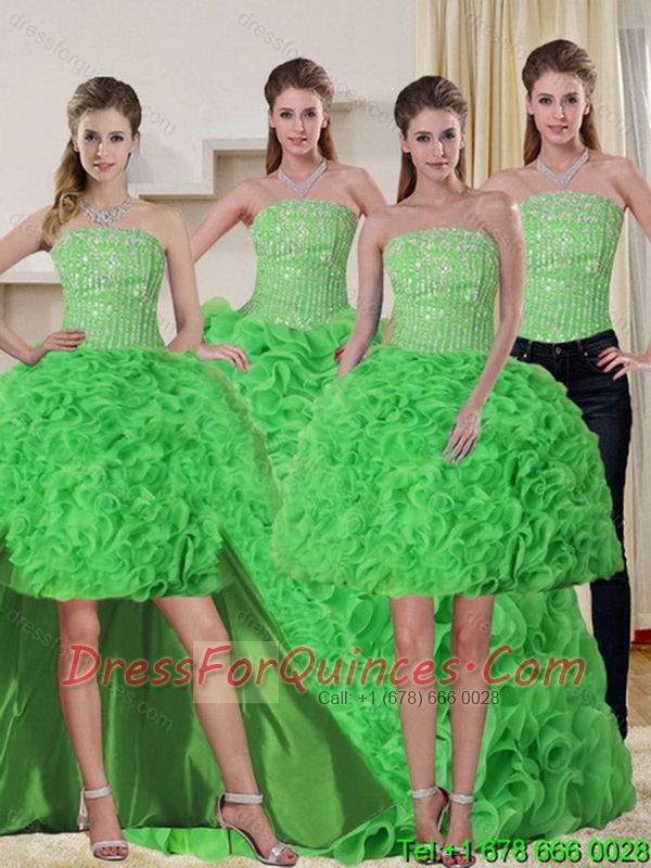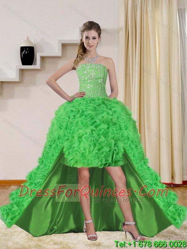 Spring Green Strapless Quinceanera Dress with Beading and Ruffles for 2015