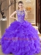 Stunning Purple Scoop Neckline Beading and Ruffles Ball Gown Prom Dress Sleeveless Lace Up
