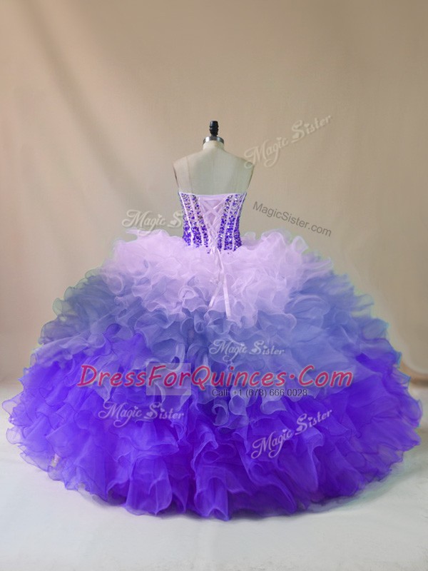 Suitable Multi-color Sleeveless Beading and Ruffles Floor Length Vestidos de Quinceanera