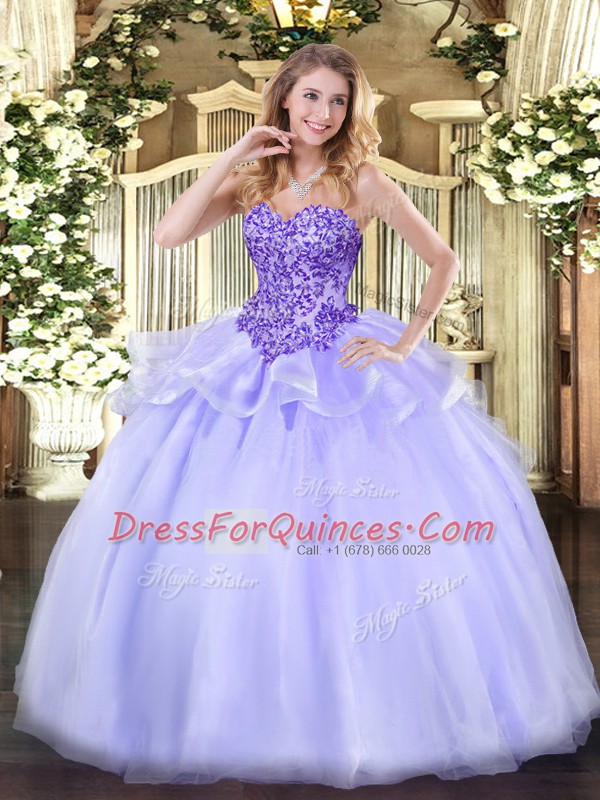 Sweetheart Sleeveless Sweet 16 Dresses Floor Length Appliques Lavender Organza