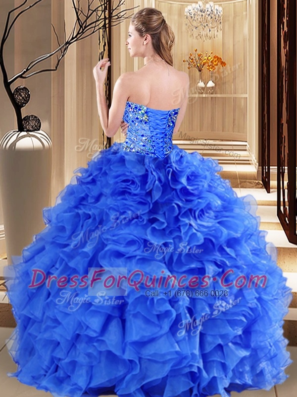 Sweetheart Sleeveless Sweet 16 Dresses Floor Length Beading and Ruffles Red Organza
