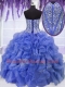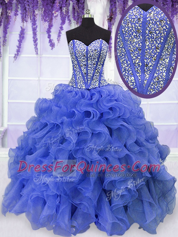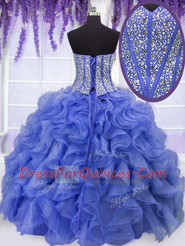Top Selling Royal Blue Sleeveless Floor Length Beading and Ruffles Lace Up Ball Gown Prom Dress