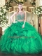 Turquoise Scoop Neckline Beading and Ruffles Vestidos de Quinceanera Sleeveless Lace Up