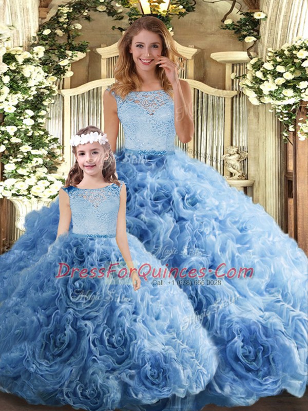 Unique Baby Blue Sleeveless Floor Length Lace Zipper 15 Quinceanera Dress