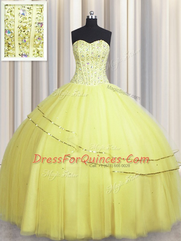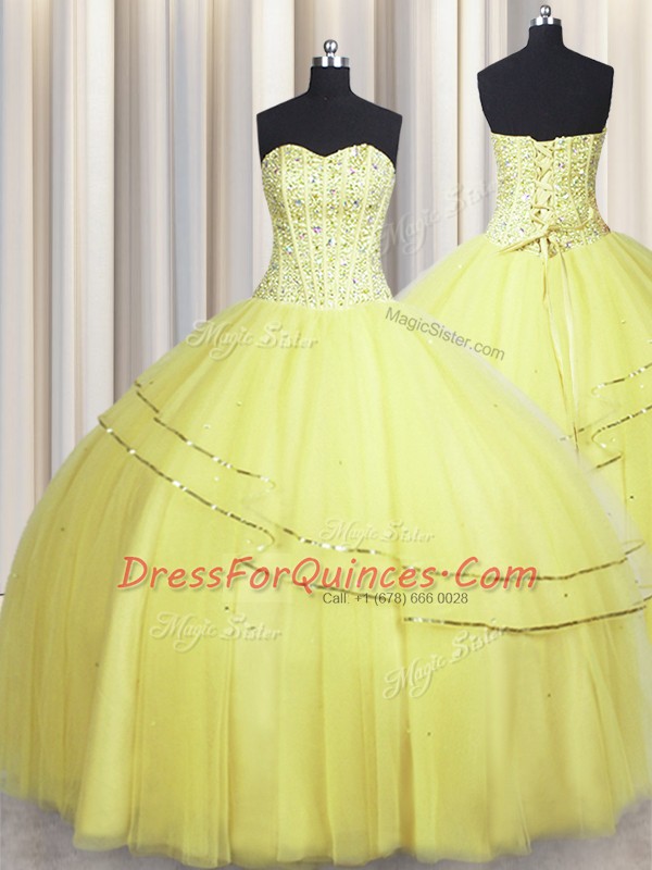 Visible Boning Really Puffy Sweetheart Sleeveless Tulle Quinceanera Dress Beading Lace Up
