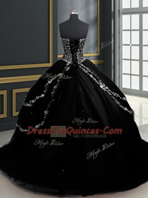 With Train Black Sweet 16 Dresses Sweetheart Sleeveless Brush Train Lace Up