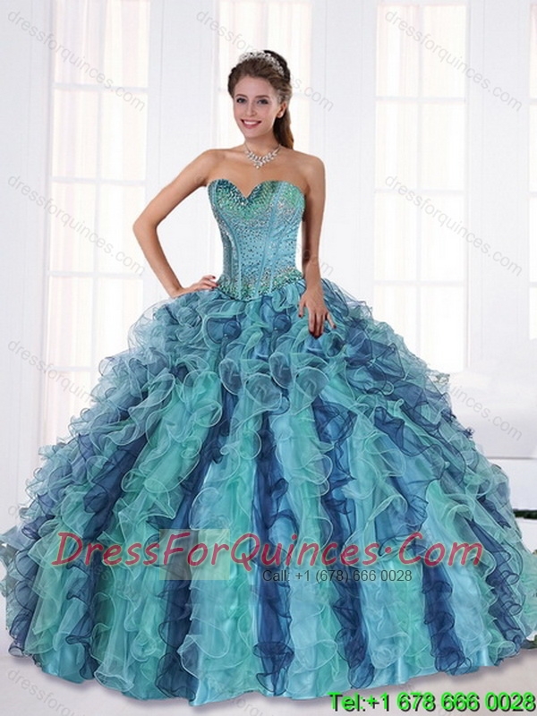 Wonderful Multi Color Quince Dresses with Beading and Ruffles for 2015