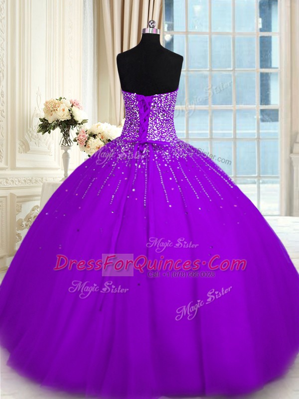 Wonderful Purple Sleeveless Tulle Lace Up Quinceanera Dress for Military Ball and Sweet 16 and Quinceanera