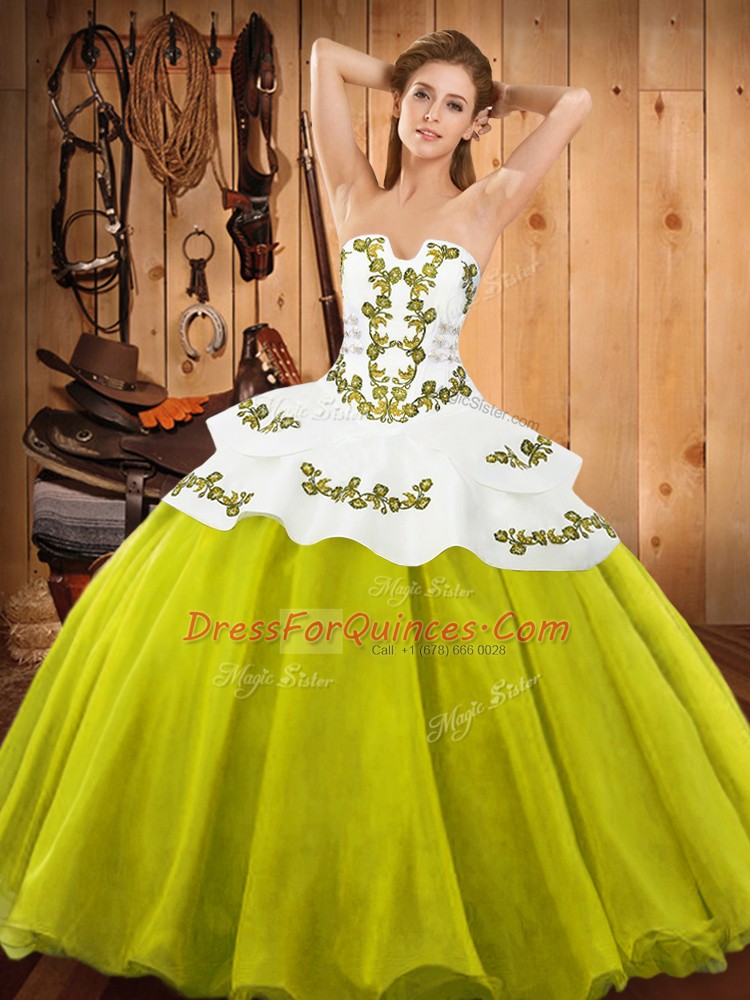 Yellow Green Sleeveless Satin and Organza Lace Up Quinceanera Gown for Military Ball and Sweet 16 and Quinceanera
